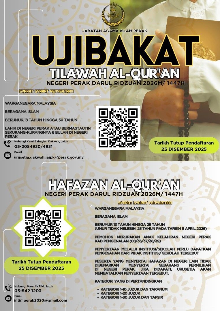 UJIBAKAT TILAWAH DAN HAFAZAN AL QURAN SEMPENA MAJLIS TILAWAH DAN HAFAZAN AL-QURAN NEGERI PERAK DARUL RIDZUAN TAHUN 1447H/2026M
